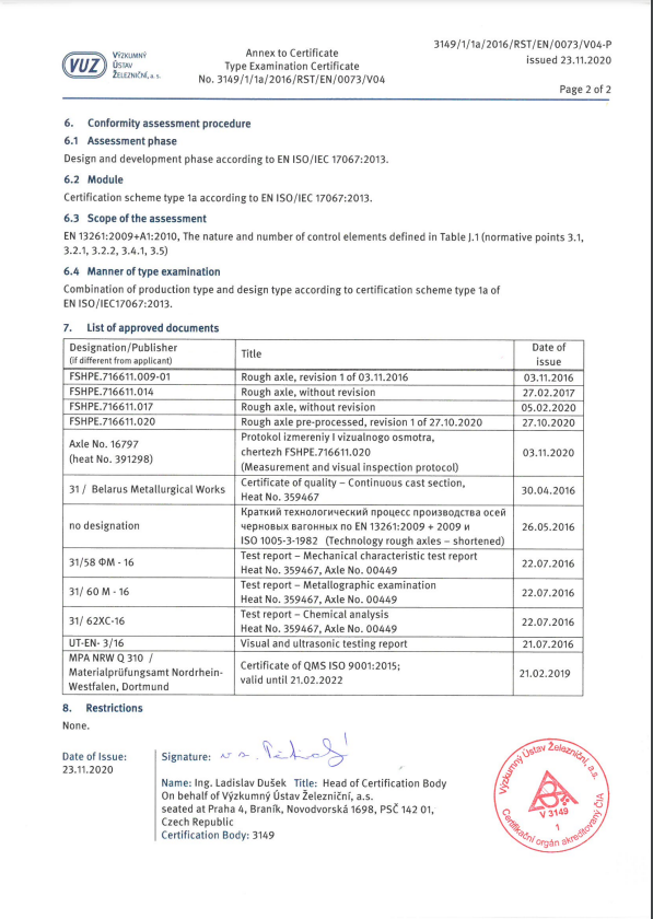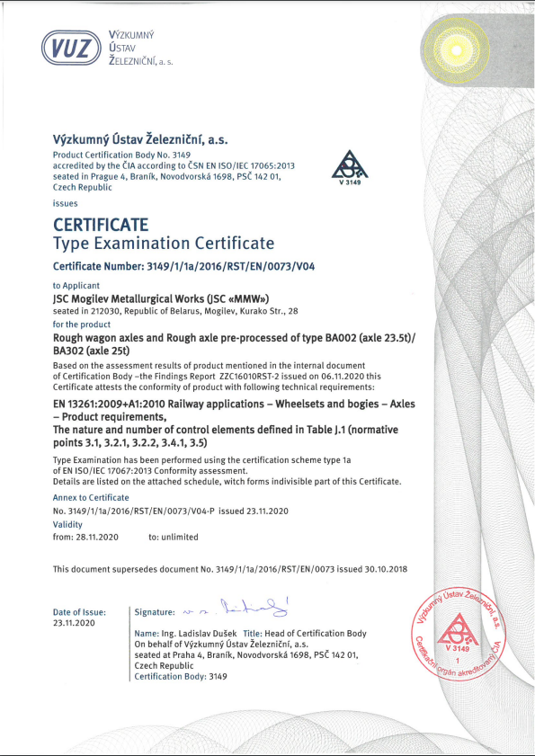 Сертификат соответствия Roughl axle 3149 1a-3