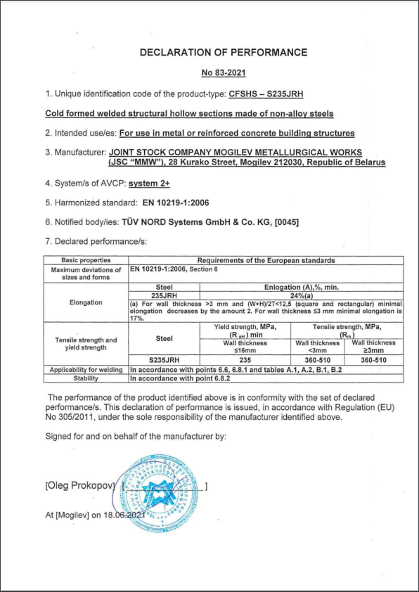 Декларация производительности 83-2021