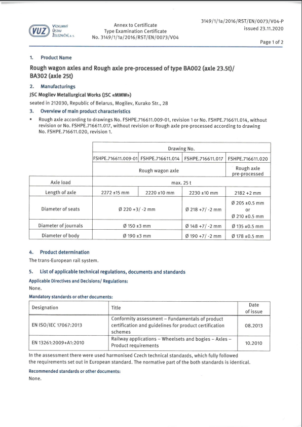 Сертификат соответствия Roughl axle 1a.1