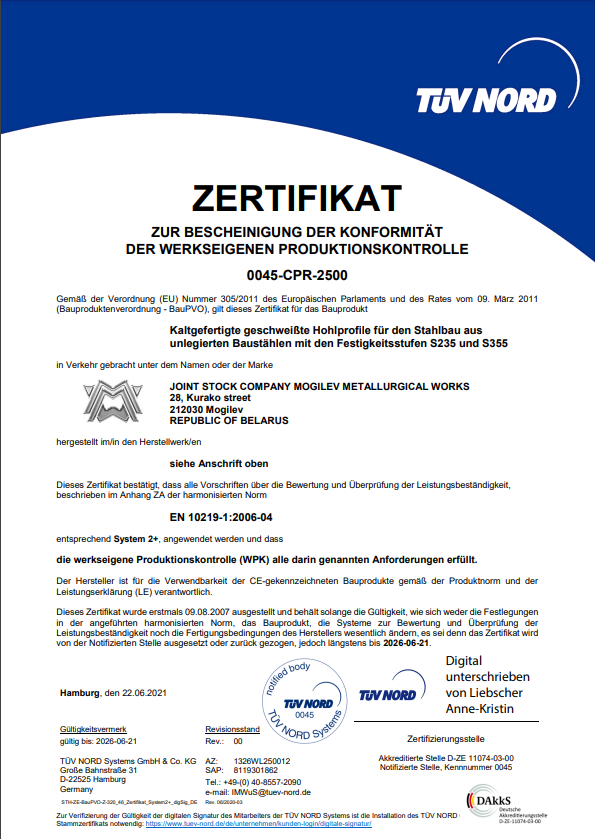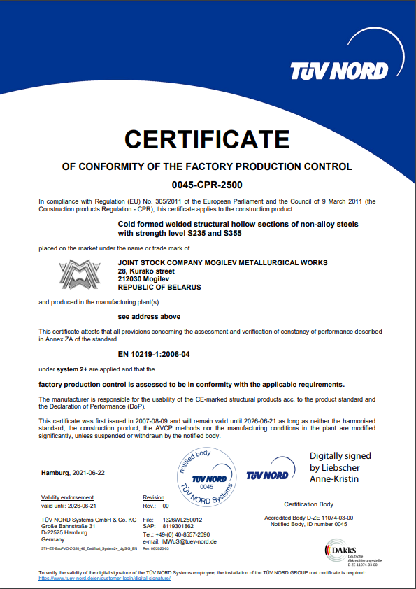 Cертификат соответствия заводского производственного контроля deu.ver