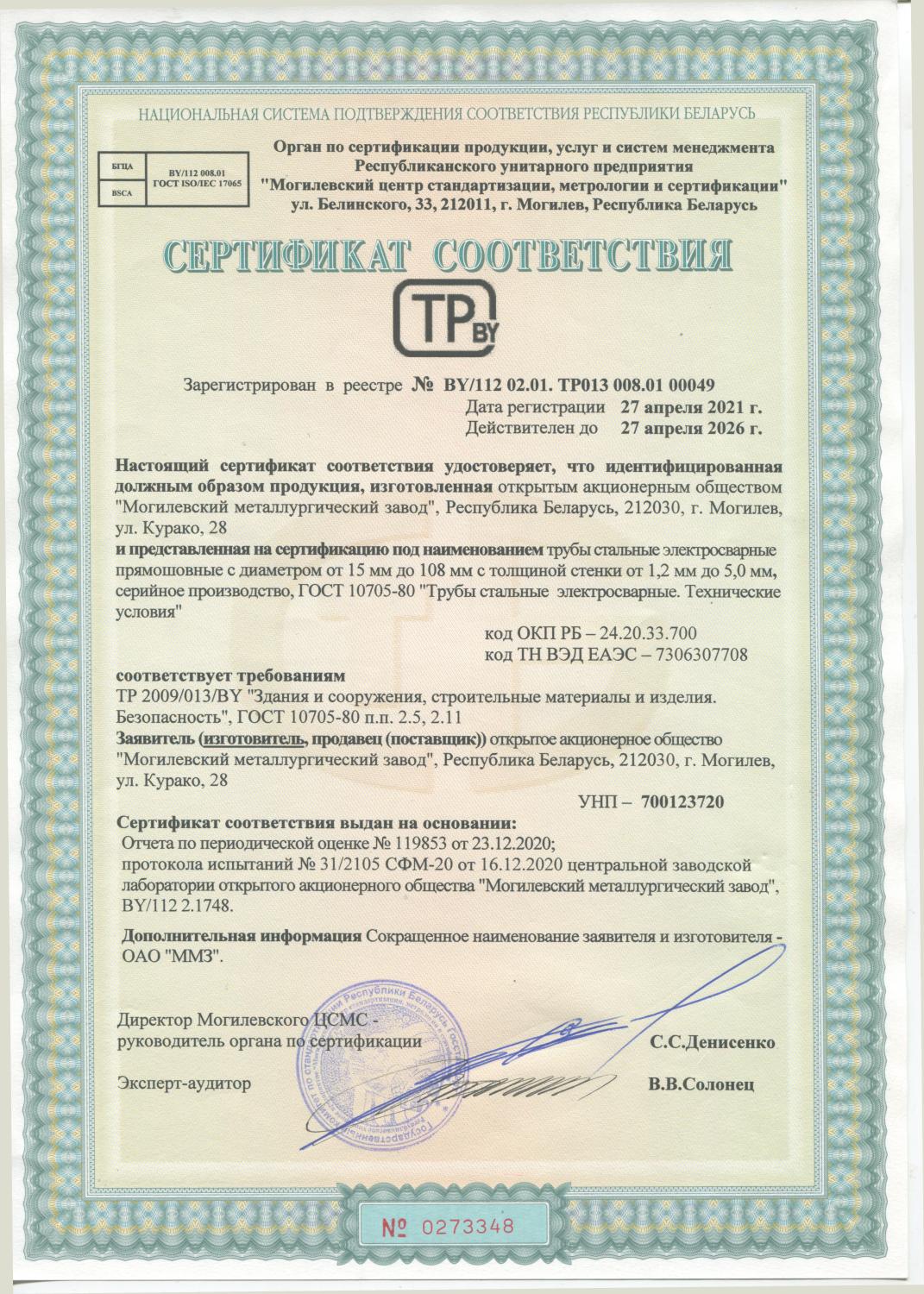 Сертификат соответствия заводского производственного контроля eng.ver