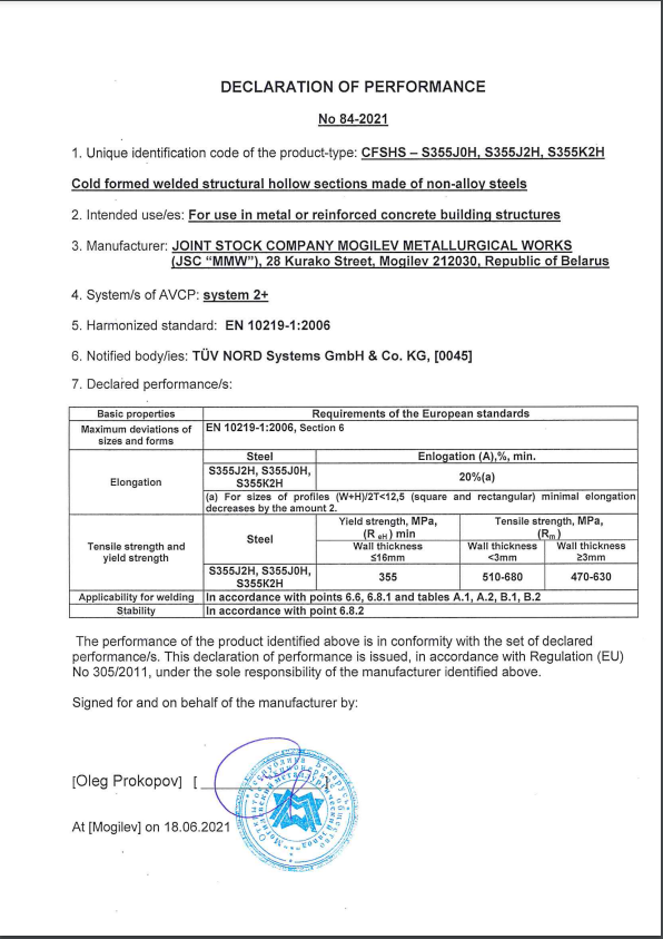 Декларация производительности 84-2021