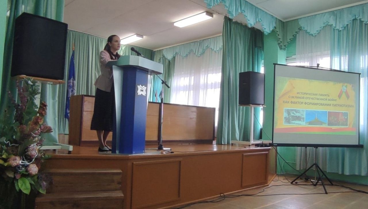 Об исторической памяти о Великой Отечественной войне трудовому коллективу рассказала заместитель директора по идеологической работе и кадрам Елена Лёзова. Участникам встречи она рассказала про основные факты Великой Отечественной войны на территории Беларуси, также остановилась на том, как осуществляются попытки фальсификации истории Второй мировой войны и Великой Отечественной войны в мировом сообществе. Отдельно был сделан акцент на сохранение исторической памяти современниками и не допущении забвения героического подвига нашего народа.