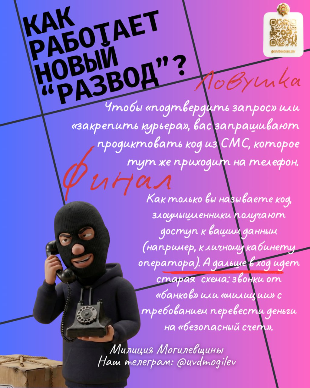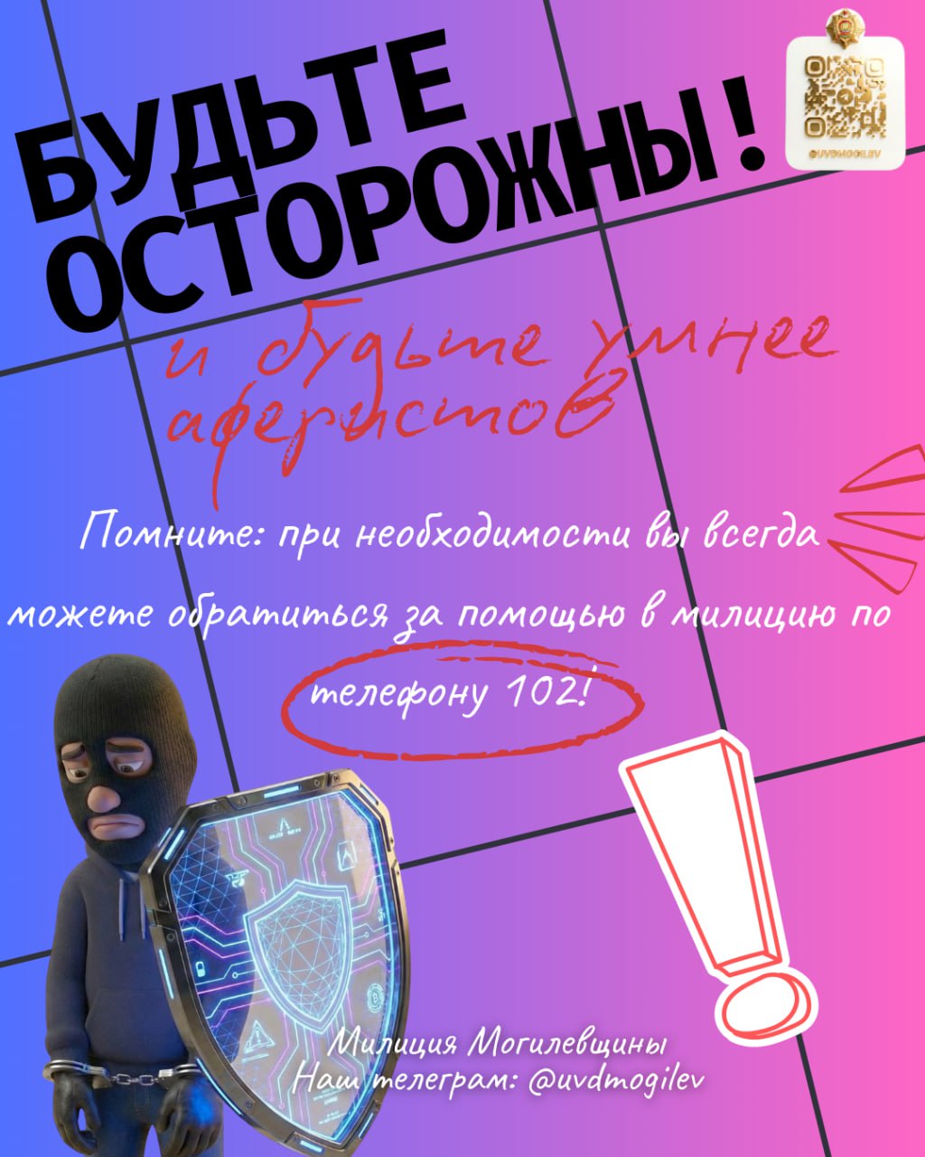 Будьте осторожны! И будьте умнее аферистов. Важно: при необходимости вы всегда можете обратиться за помощью в милицию по телефону 102!