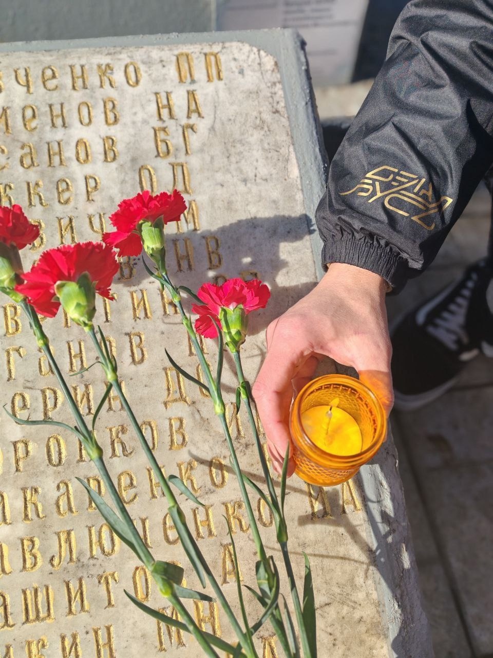 Молодёжь предприятия и члены Первичных объединений РОО "Белая Русь", ОО "БСЖ" и ОО "БРСМ", Совет ветеранов, партийцы Белорусской партии "Белая Русь" приняли участие в символичной акции "Свеча памяти" возложив цветы на Братскую могилу милиционеров на Машековском кладбище, где почтили память павших минутой молчания.