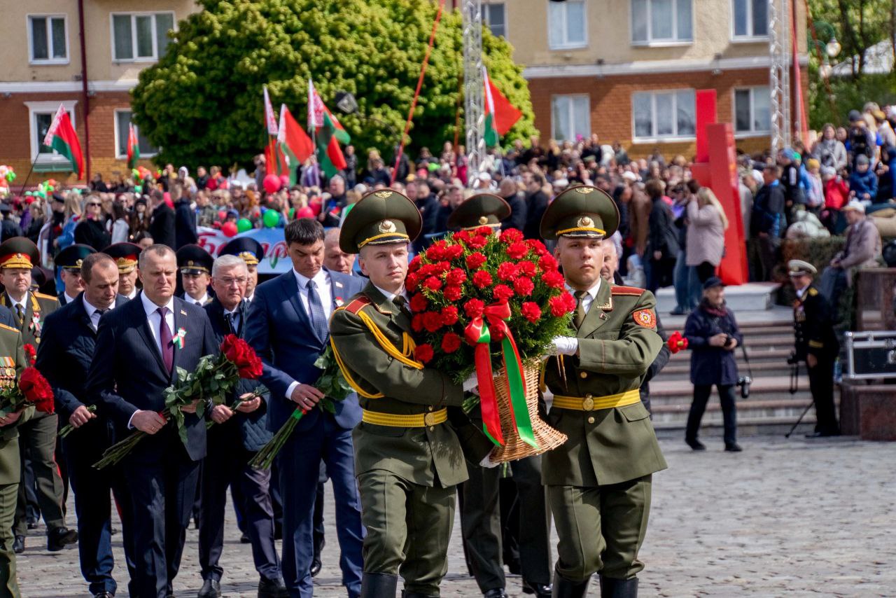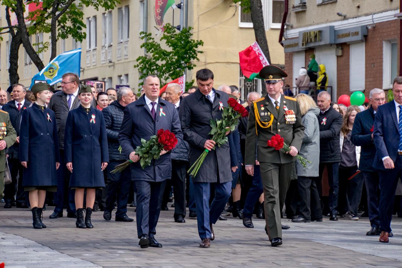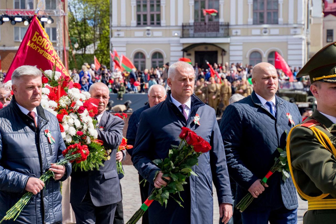 9 мая — День Великой Победы. Торжественная церемония возложения цветов прошла у Вечного огня на площади Славы в Могилеве.