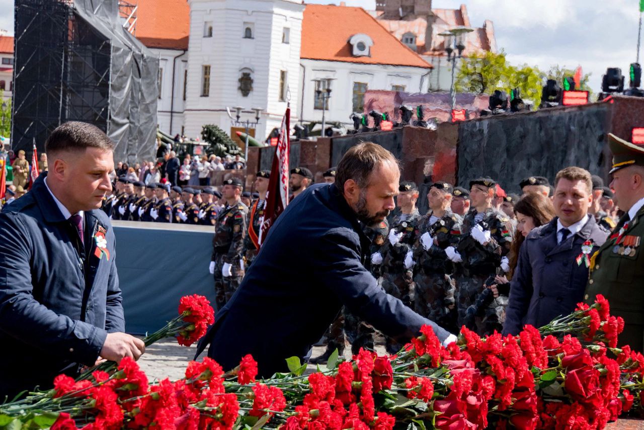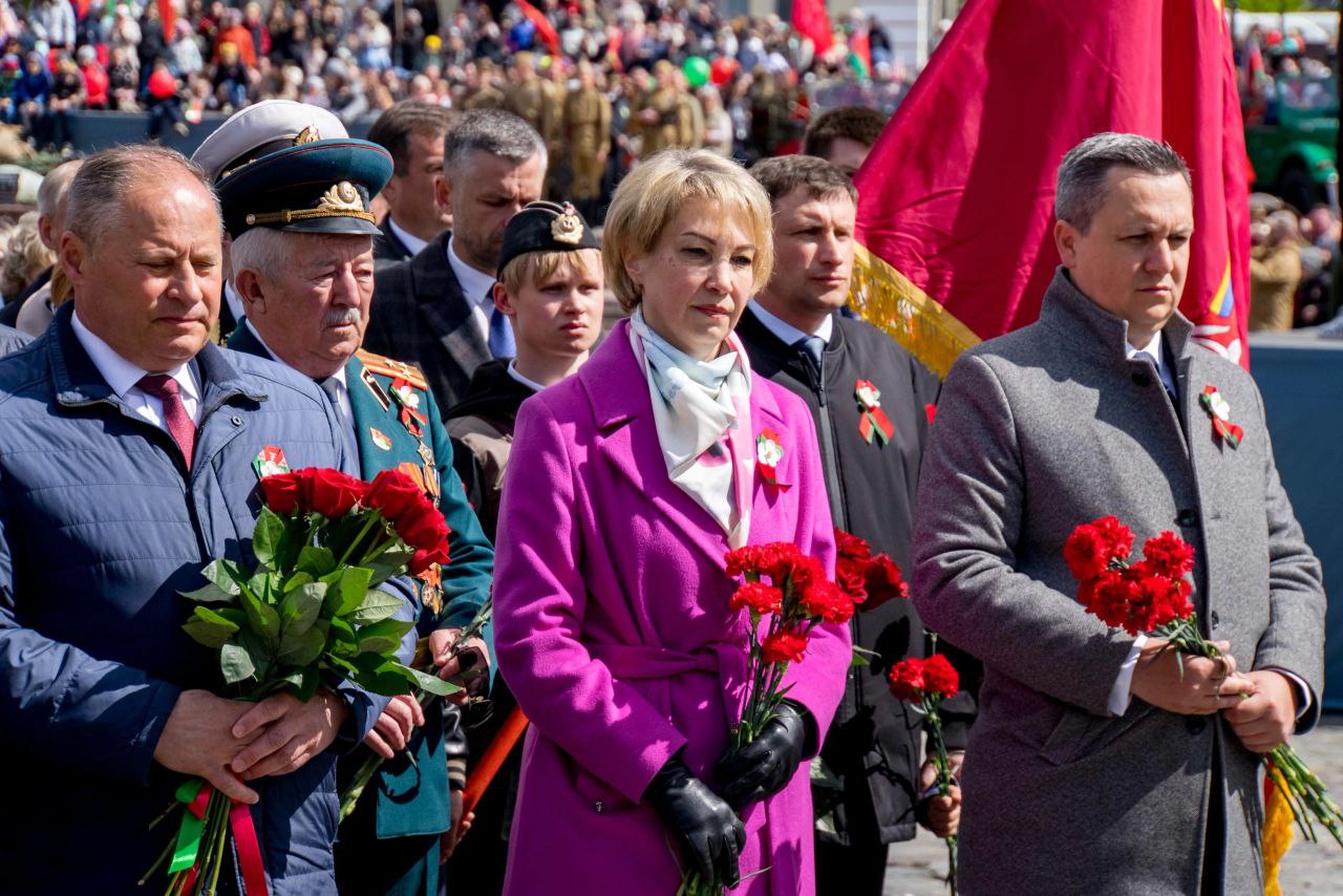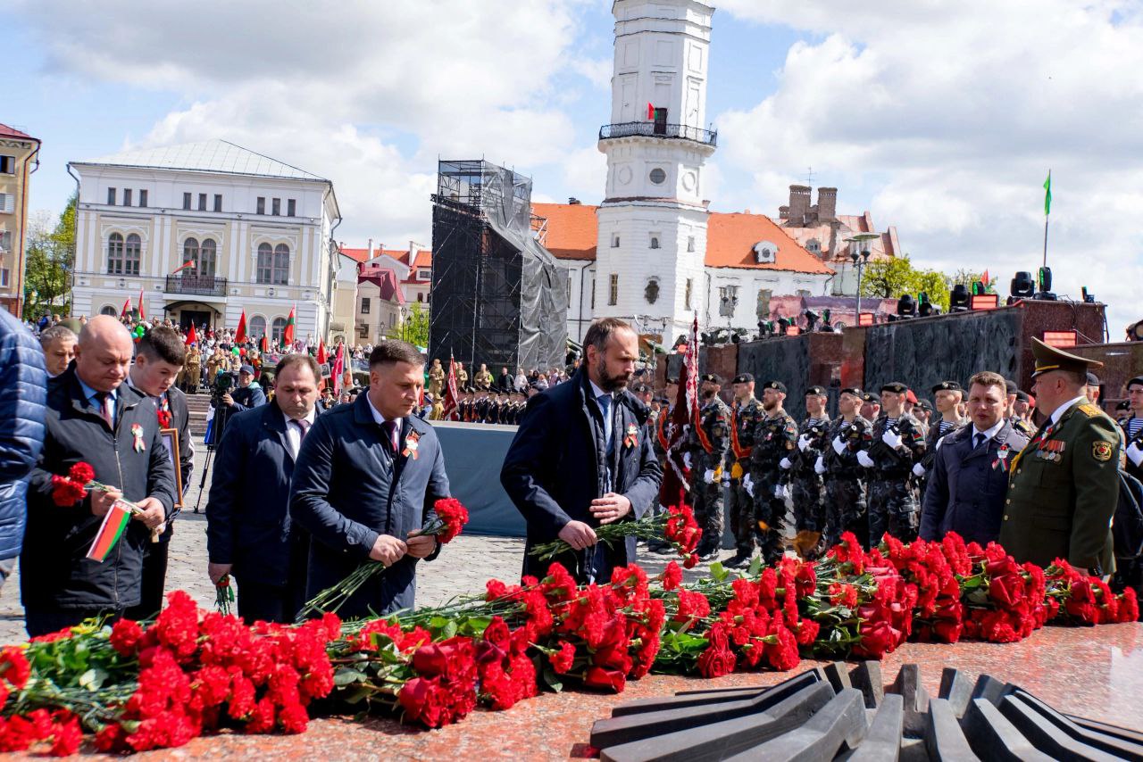 9 мая — День Великой Победы. Торжественная церемония возложения цветов прошла у Вечного огня на площади Славы в Могилеве.