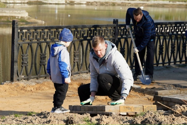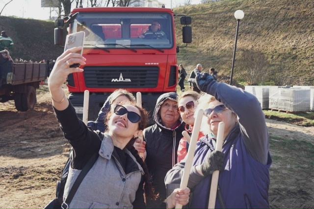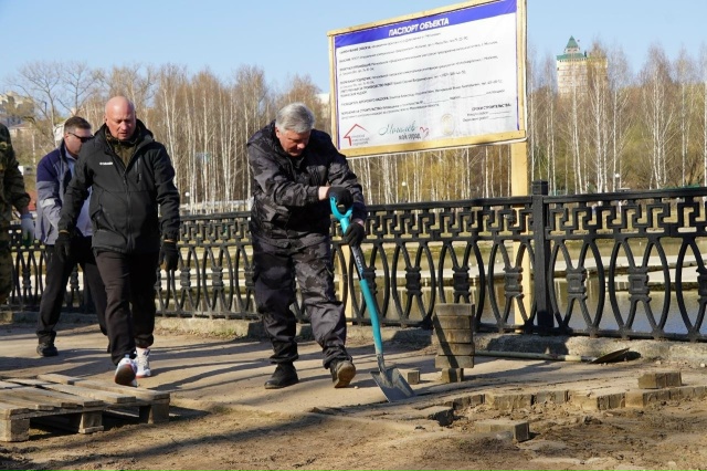 Сегодня на субботнике в Могилёве с набережной Дубровенки аккуратно демонтируют плитку