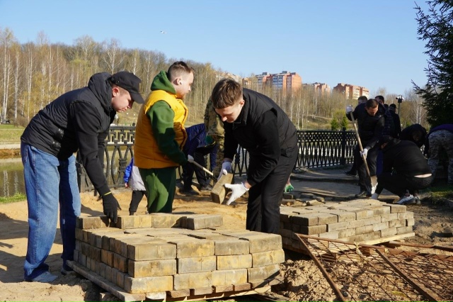 Хозяйский подход. Сегодня на субботнике в Могилёве с набережной Дубровенки аккуратно демонтируют плитку