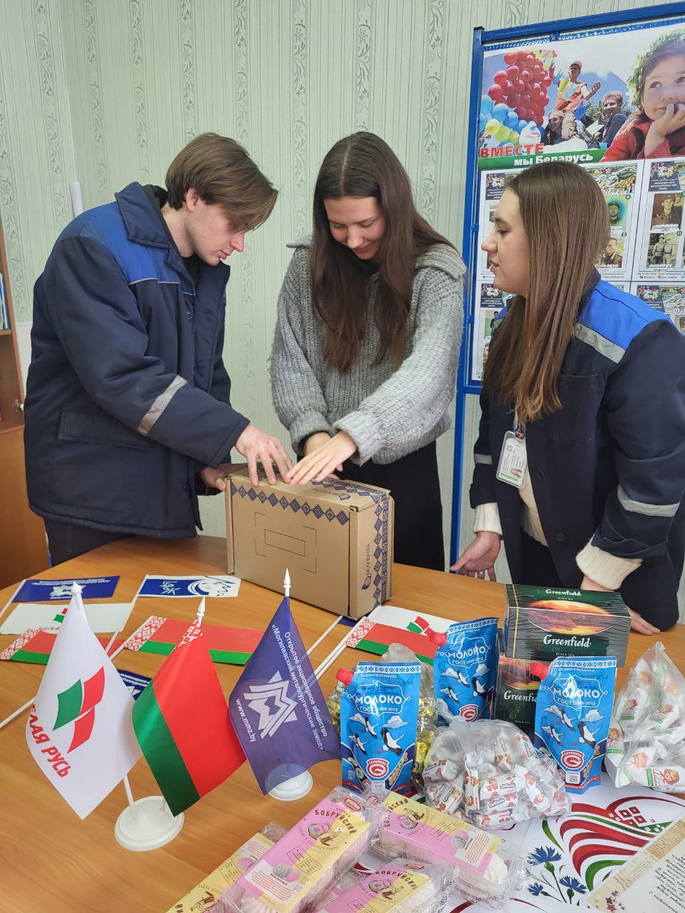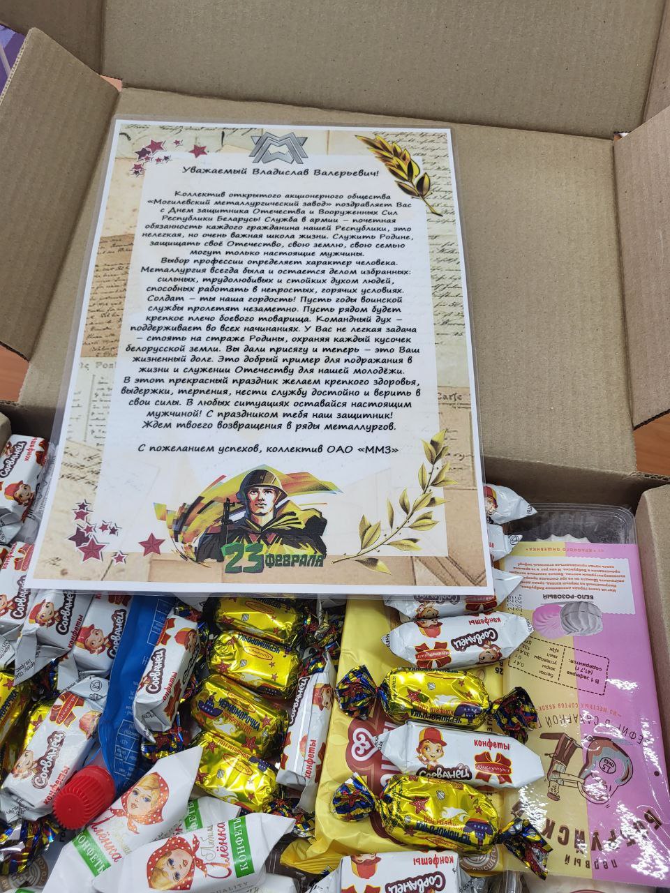 В канун празднования 23 февраля коллектив написал поздравительное письмо своим металлургам и подготовили посылку: печенье, зефир, шоколадные конфеты, чай и сгущенку - любимое армейское лакомство.