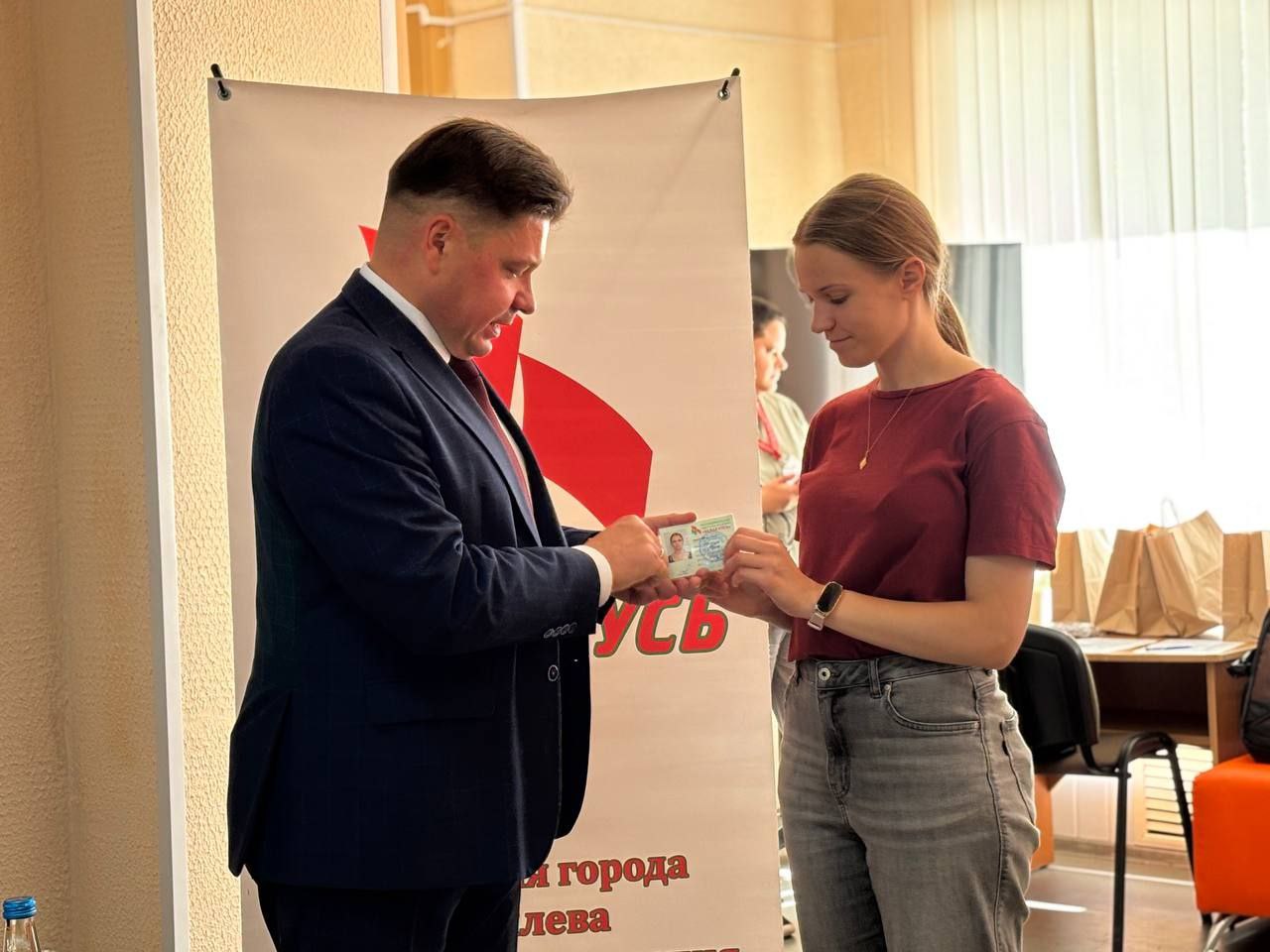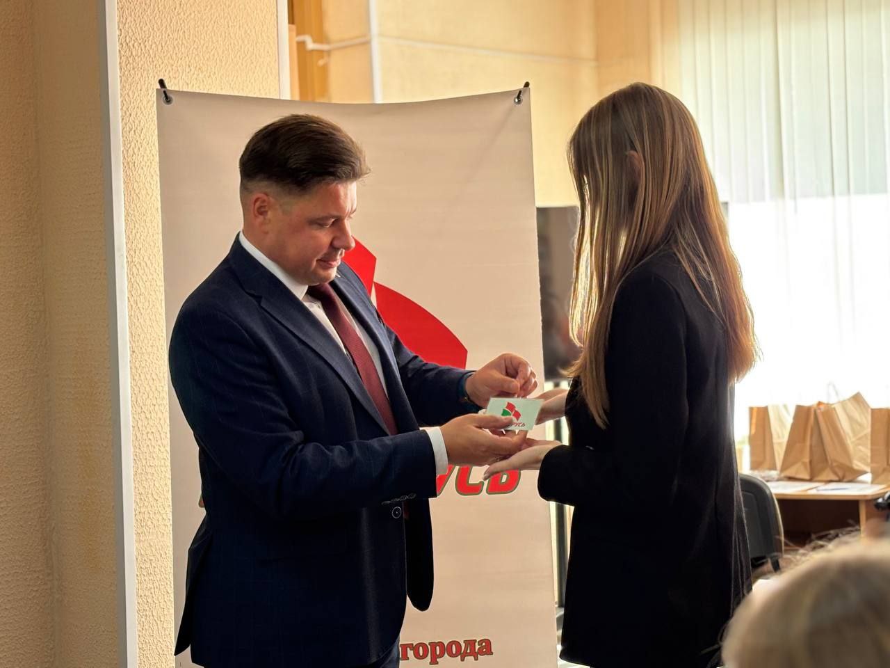 Для молодежи ОАО "ММЗ" эта встреча стала особенной и незабываемой ещё и потому, что в торжественной обстановке председатель Ленинской г. Могилева районной организации РОО "Белая Русь" Евгений Дуплевский вручил членские билеты и первичная организация РОО "Белая Русь" ОАО "ММЗ" пополнила свои ряды молодыми металлургами с активной жизненной позицией.
