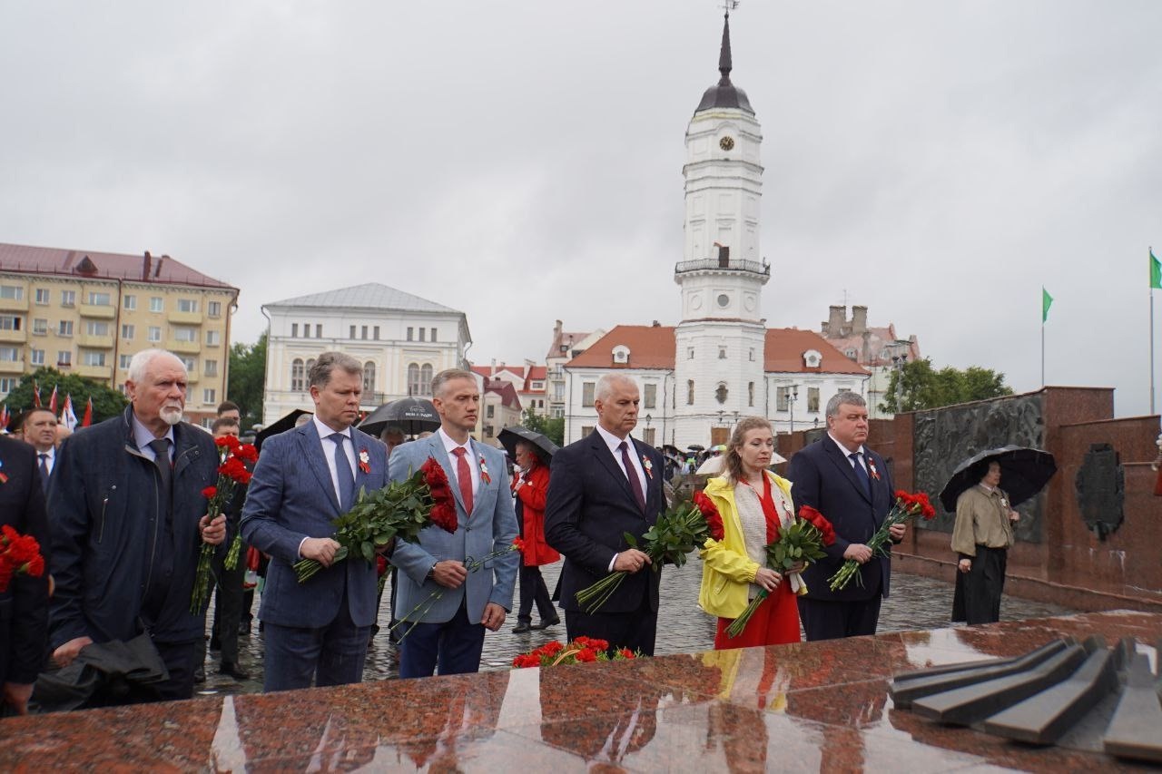 На площади Славы состоялось возложения цветов и венков к Вечному огню в день 81-ой годовщины освобождения Могилева от немецко-фашистских захватчиков.