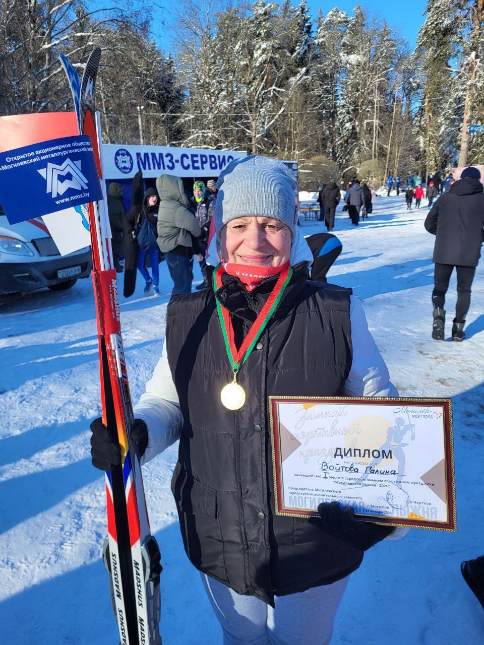 НАША "ВЕТЕРАН" - МЕТАЛЛУРГ ОАО "ММЗ" - ЛУЧШАЯ! Галина Васильевна Войтова, победитель в лыжной эстафета в спортивном празднике "Могилевская лыжня — 2026" - заняла 1 место