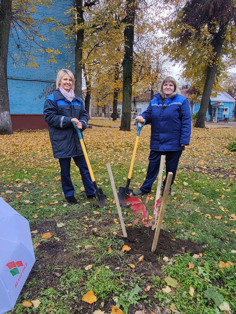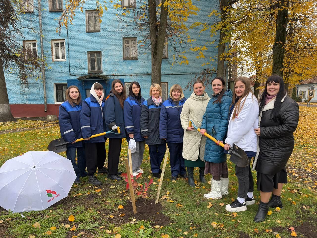 Прекрасная половина актива общественных объединений и партии "Белая Русь", "БСЖ", "БРСМ" ОАО "Могилевский металлургический завод" торжественно высадили деревья в День отца.