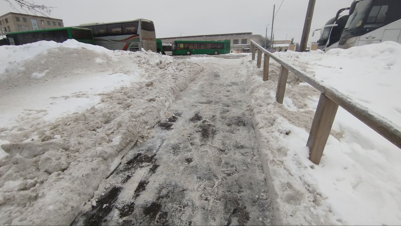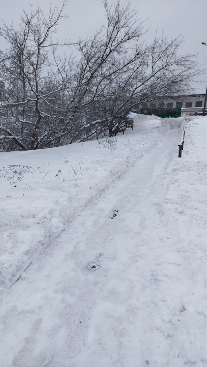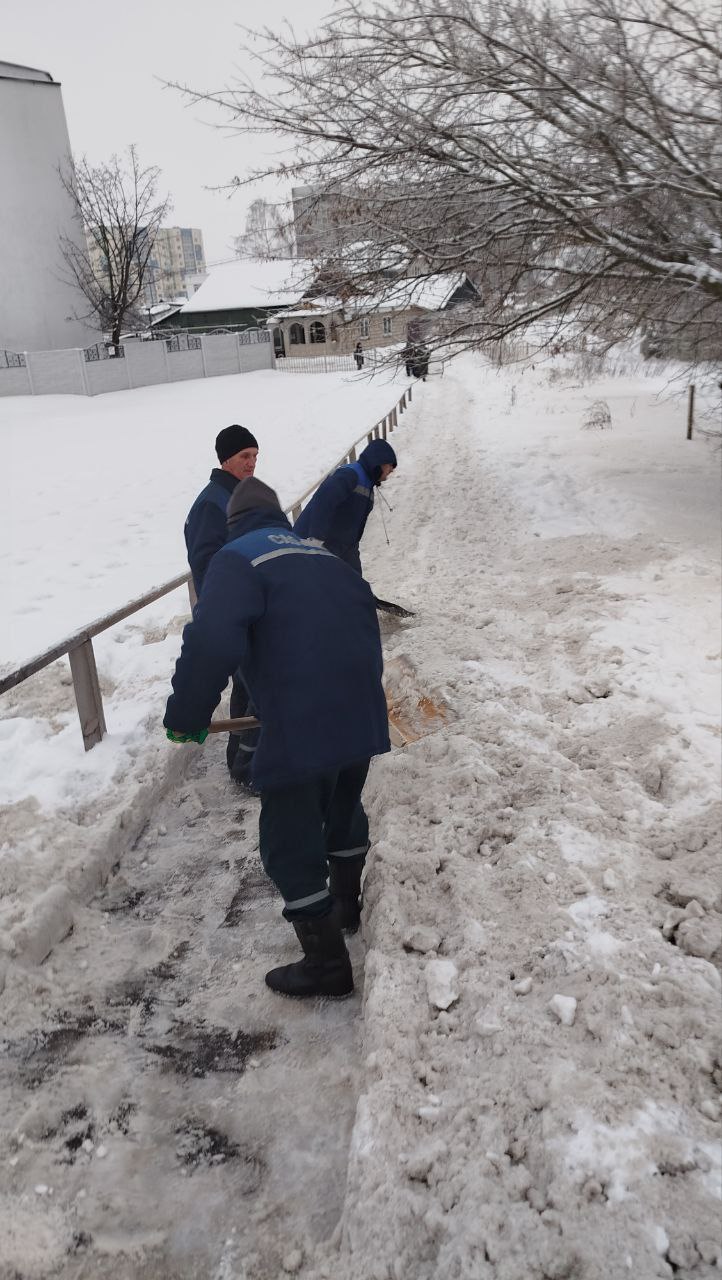 После очередного снежного циклона стал особенно опасным спуск от автовокзала. Понимая, что это — дорога для матерей с колясками, пожилых людей и всех, кто спешит на работу, наши сотрудники по собственной инициативе организовали расчистку спуска.