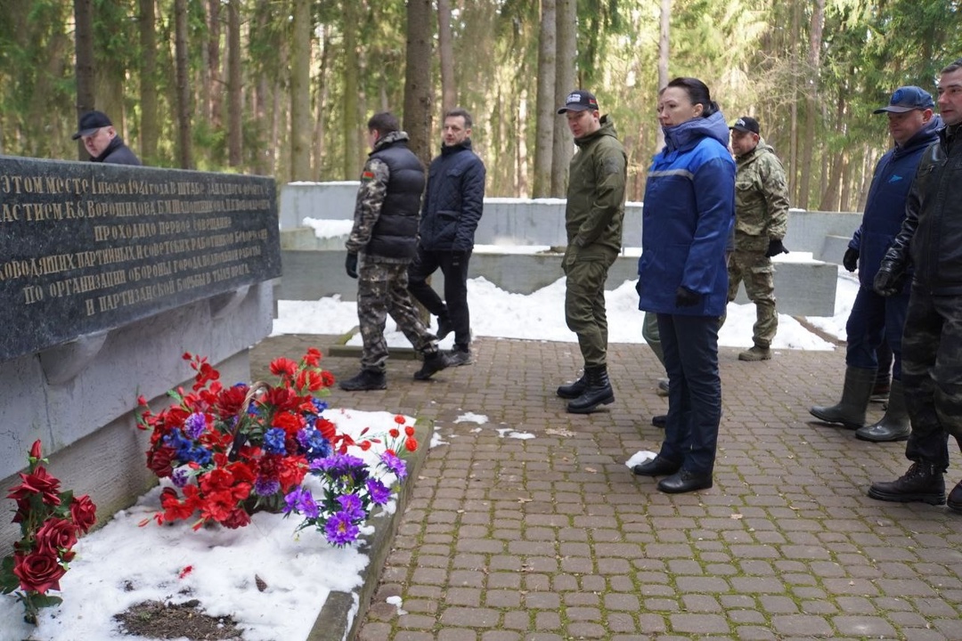 Председатель Могилевского горисполкома Сергей Чертков вместе с заместителями, членом Совета Республики Национального собрания Ириной Петрусевич, депутатами горсовета депутатов во главе с его председателем Максимом Гуриным работают в районе мемориального комплекса «Землянка».