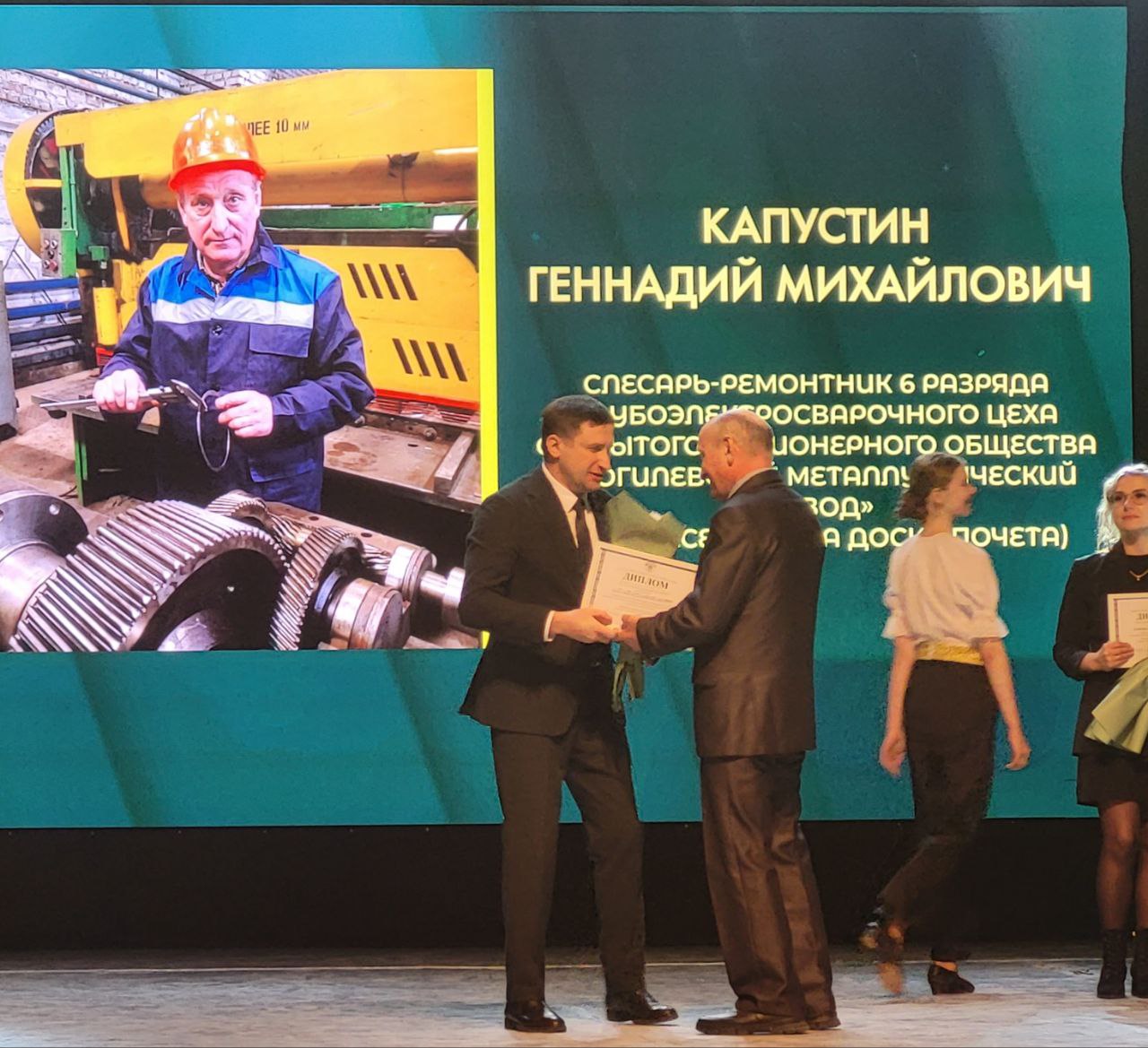 Глава администрации Ленинского района Андрей Анатольевич Конев, так же вручил Диплом за высокие профессиональные достижения Геннадию Михайловичу Капустину, слесарь-ремонтник 6 разряда трубоэлектросварочного цеха ОАО "ММЗ".