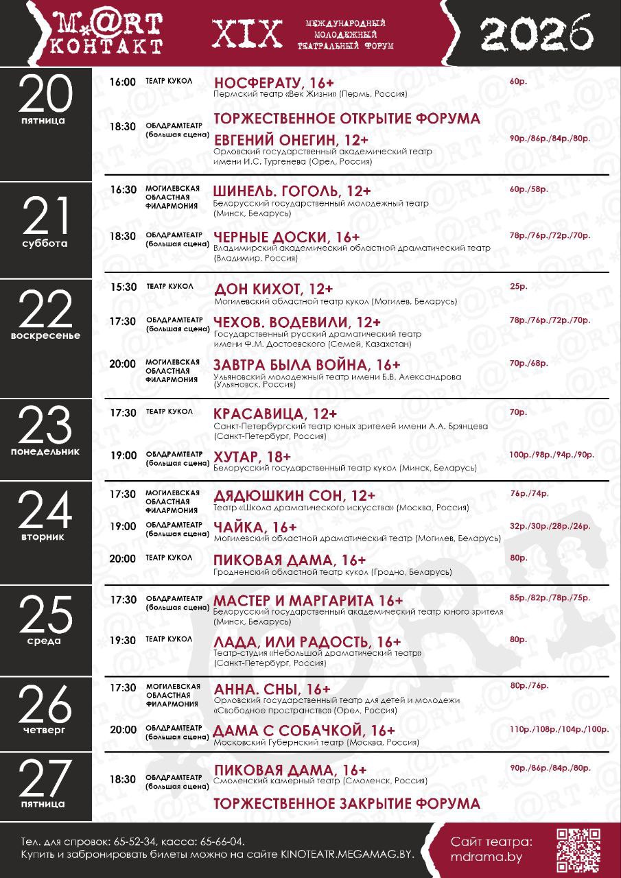 XIX Международный молодёжный театральный форум «M.@rt. контакт—2026» пройдет в Могилёве с 20 по 27 марта.