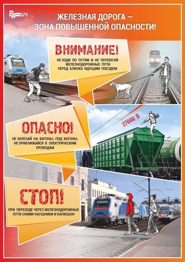 ️Белорусская железная дорога призывает граждан соблюдать правила безопасности при нахождении на железнодорожных путях и вблизи железнодорожного полотна:
